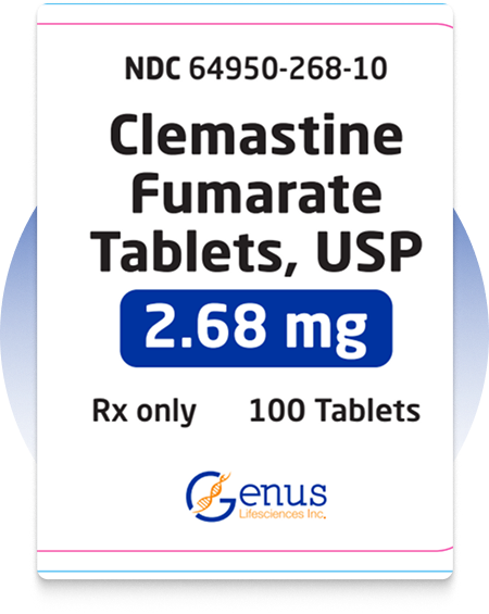 Clemastine Fumarate Tablets USP, 2.68 mg are indicated for the relief of symptoms associated with allergic rhinitis such as sneezing, rhinorrhea, pruritus, and lacrimation. Clemastine Fumarate Tablets USP, 2.68 mg are also indicated for the relief of mild, uncomplicated allergic skin manifestations of urticaria and angioedema. It should be noted that clemastine fumarate is indicated for the dermatologic indications at the 2.68 mg dosage level only.